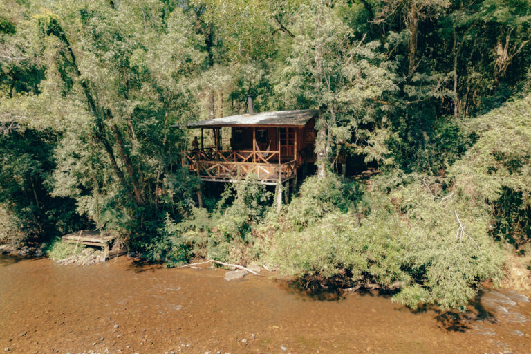 En el lodge, contamos con cuatro amplias y luminosas cabañas, ubicadas en la ribera del arroyo Paraíso, y decoradas con un exquisito encanto que se fusiona con la frondosa belleza de la naturaleza circundante. Cada una de ellas se compone de una amplia habitación principal con cama doble, escritorio y salamandra, y una segunda habitación con dos camas twin con salida al deck, que acomodan hasta cinco personas. También tenemos una cabaña más pequeña, ideal para dos o tres personas. Todas las cabañas tienen vistas increíbles de la Reserva de Biósfera Yabotí.